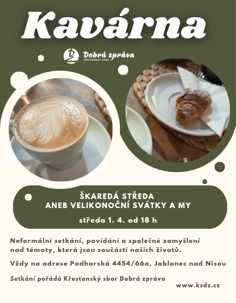 Už více než dva roky se pravidelně scházíme na našich "kavárnách" a diskutujeme o různých tématech. Od 8. dubna ovšem vstoupíme na objevitelskou dráhu pod názvem Alfa kavárna. Společně prozkoumáme několik základních témat, která se vztahují k Bohu, víře a smyslu života. Naše Alfa kavárna je (nepřekvapivě) inspirovaná oblíbenými kurzy Alfa. Zajímá vás to?